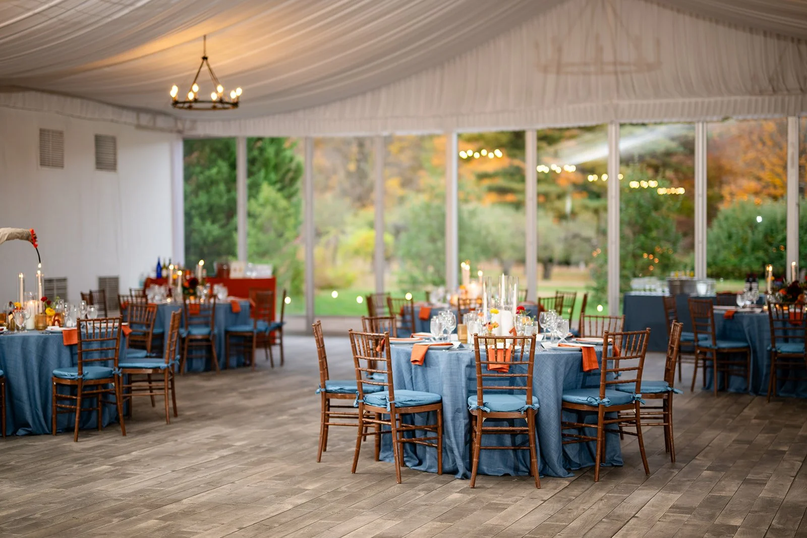 The reception space at Boscobel is unique, with expansive glass walls that keep you connected to the Hudson Valley landscape throughout the night. Even once the celebration moves indoors, the views remain part of the experience.