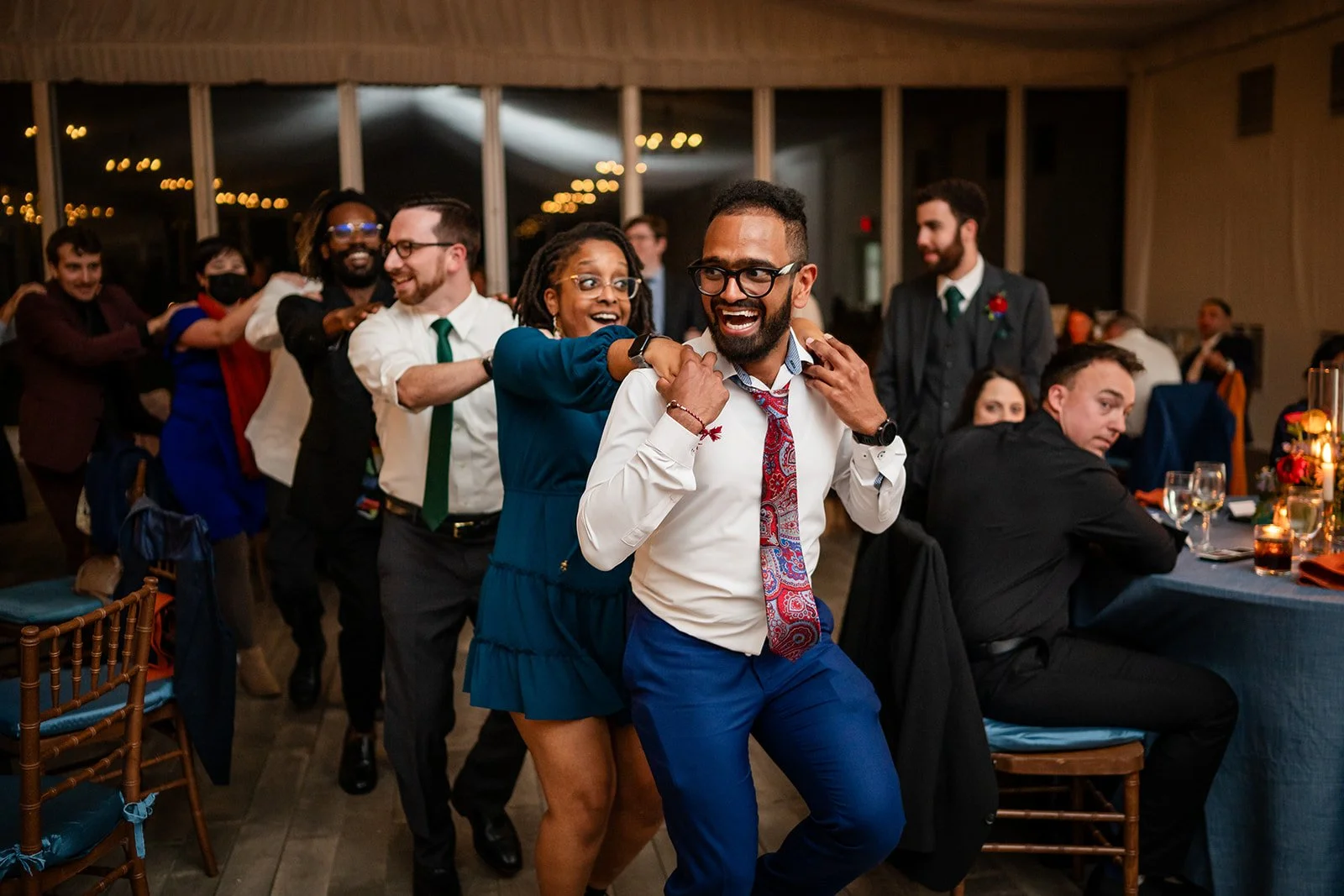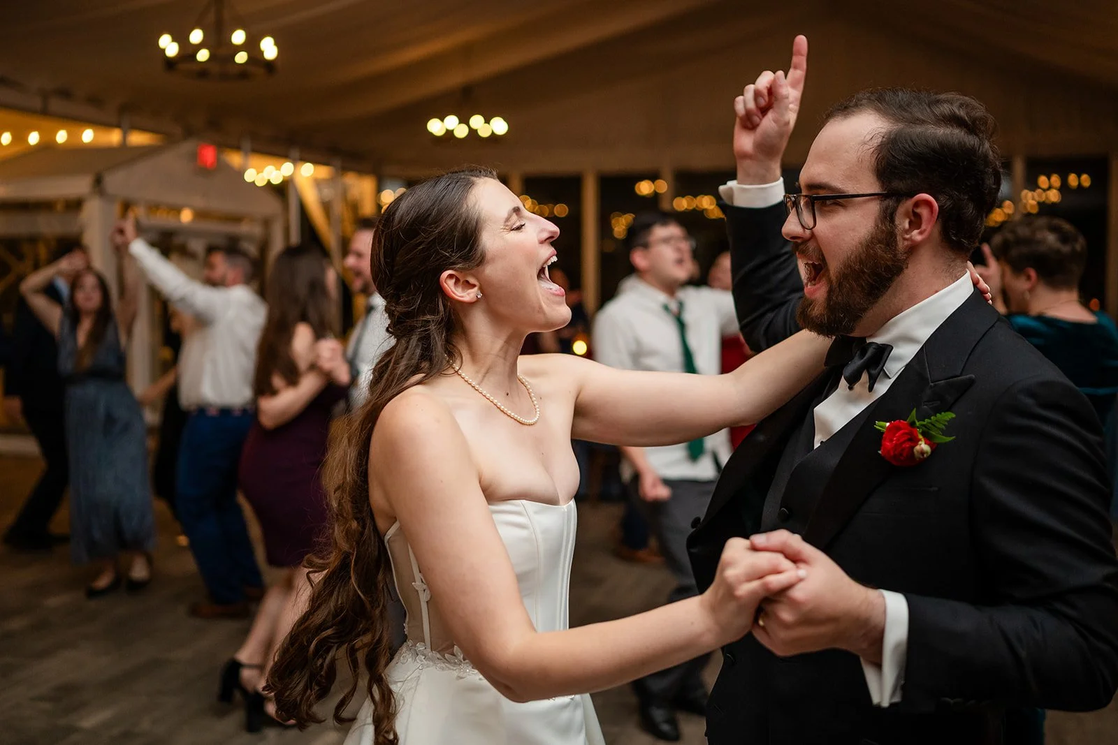 Outdoor moments transition beautifully into indoor dancing here, but timing and coordination are everything.