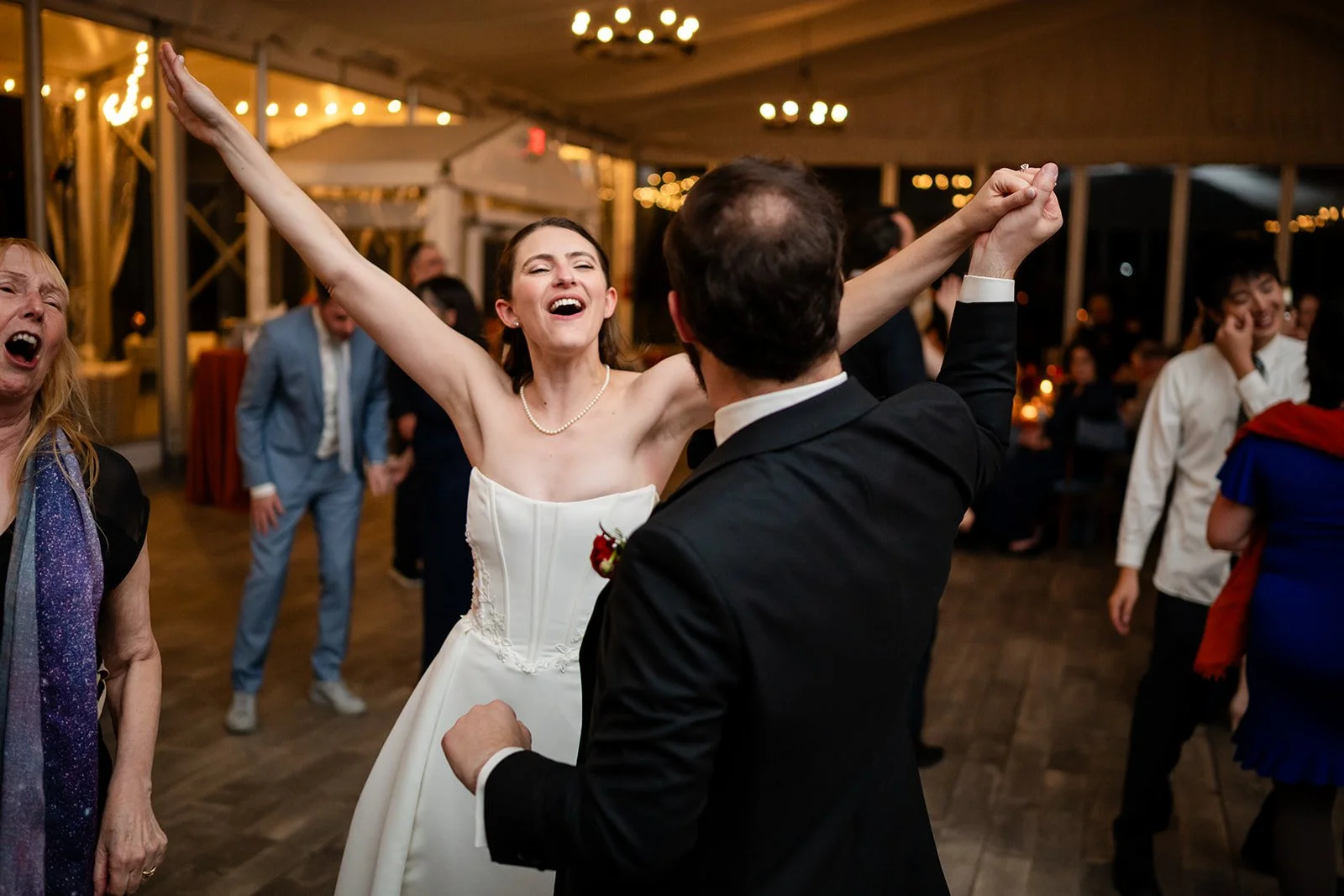 Because of the local sound ordinance, DJs use the venue’s in-house system. Even with that limitation, the sound is clear, full, and more than capable of supporting a packed and energetic dance floor. (Thanks, Frankie!) When the room peaks, it feels immersive, exciting, and exactly what couples are hoping for.