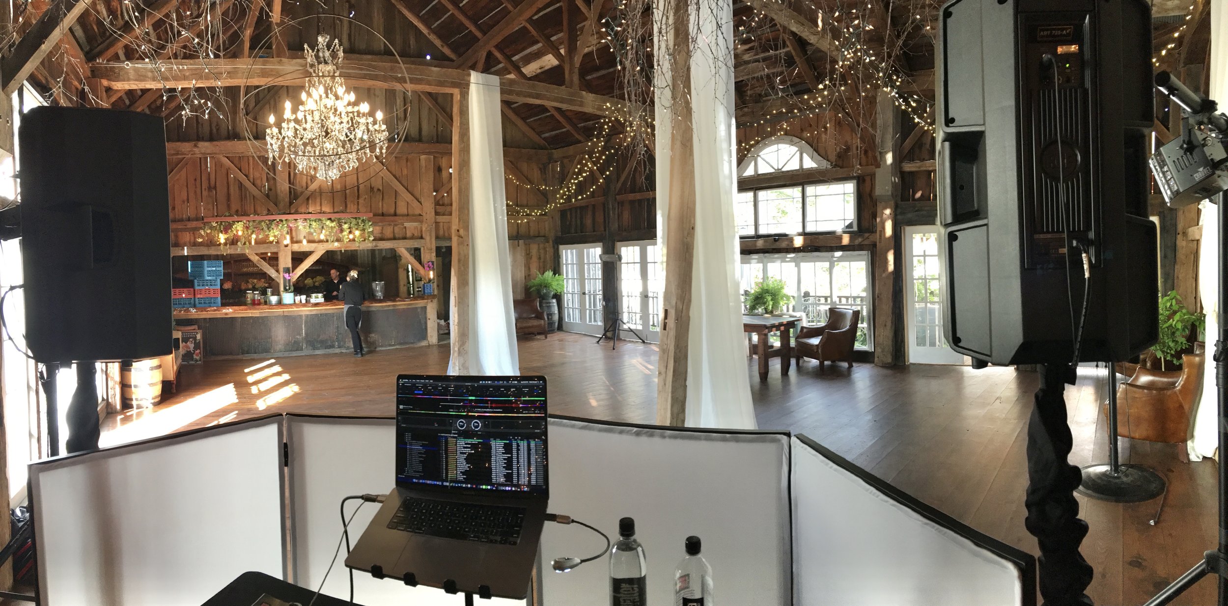 Once the music kicks in, the room transforms. The deep, full sound of my professional DJ system fills the barn with just the right amount of “punch.” It’s tight, immersive, and powerful enough to carry the energy of a packed dance floor. It’s the kind of space where guests don’t just hear the music, they feel it, and stay on the dance floor because of it.